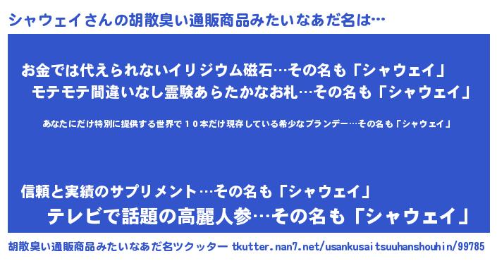 | 意味不明あだ名 | 『住所不定無職シャウェイ(77歳)』 |