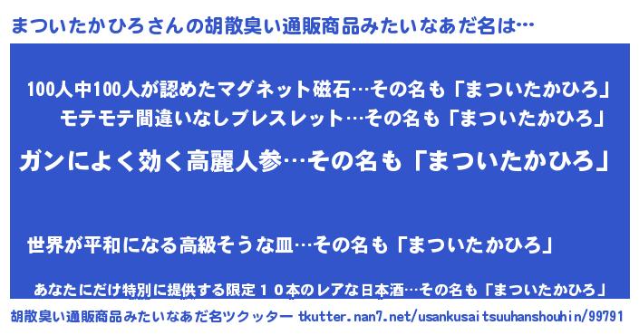 | 肩書あだ名 | 『まついたかひろ閣下』 |