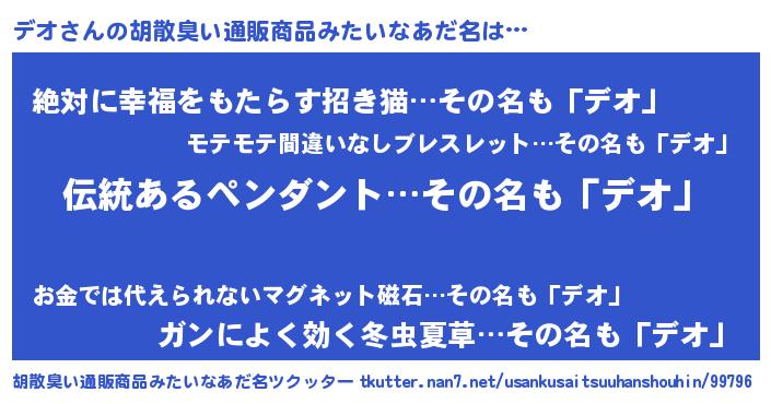 | 恥ずかしいあだ名 | 『デオリンリン』『デオちん』 |