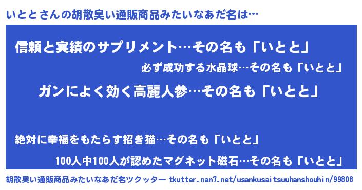 | 意味不明あだ名 | 『自称いとと』『とにかく怪しいいとと』 |