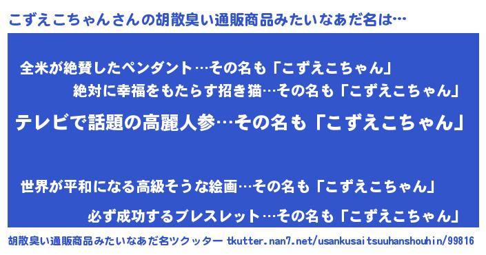 | 男性向けラノベタイトル風あだ名 | 『転生したらこずえこちゃんだった件』 |