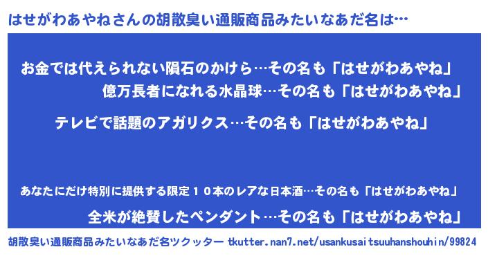 | 意味不明あだ名 | 『自称はせがわあやね』 |