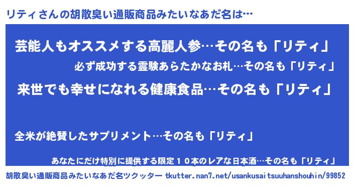 リティさんの胡散臭い通販商品みたいなあだ名をツクッター!