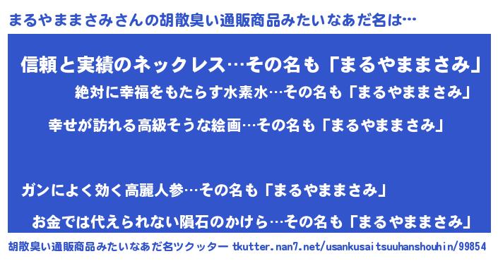 | 肩書あだ名 | 『まるやままさみ総理大臣』 |