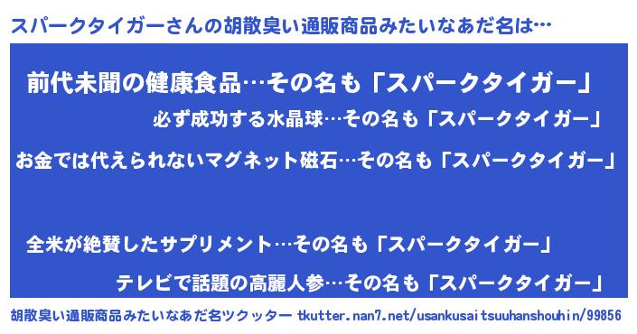 | ヘコむあだ名 | 『スパークタイガー(小並感)』『スパもー』 |
