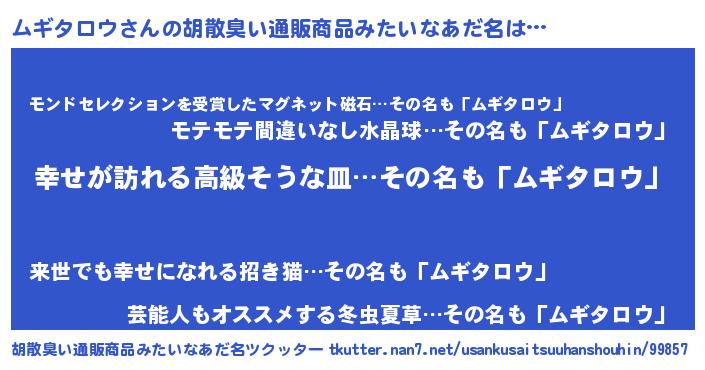 | 欧米人風あだ名 | 『ムギタロウクリステル』 |