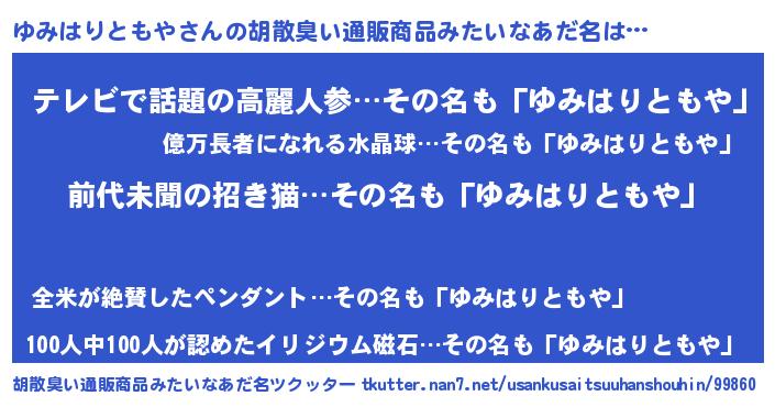 | ヘコむあだ名 | 『ゆみはりともや(笑)』『ゆみにー』 |