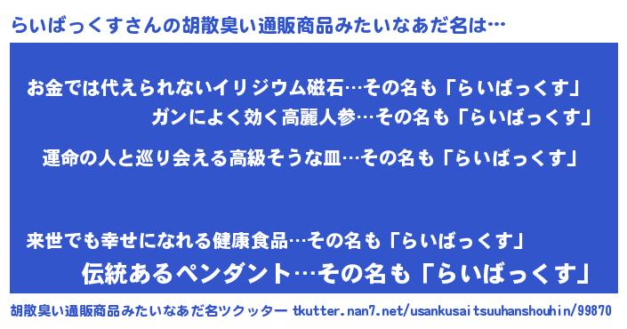| 意味不明あだ名 | 『らいばっくすフォーエバー』 |