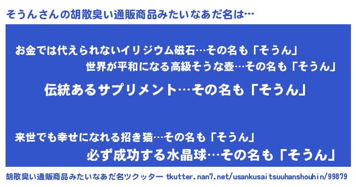 | 意味不明あだ名 | 『とにかく怪しいそうん』 |