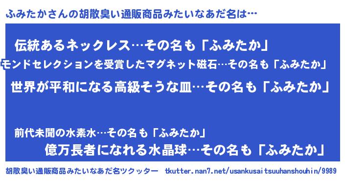 | 意味不明あだ名 | 『ふみたかフォーエバー』 |