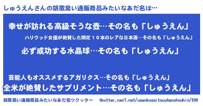 | ピコ太郎風あだ名 | 『シコ五郎』『ピシ四郎』『シュ十郎』 |