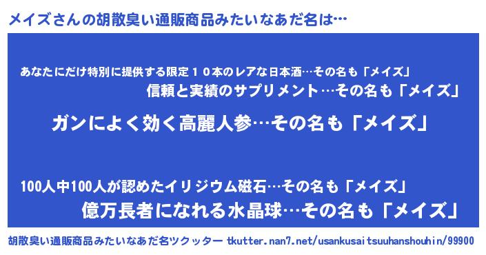 | ヘコむあだ名 | 『メイふぇ~』『メイぷりん』 |