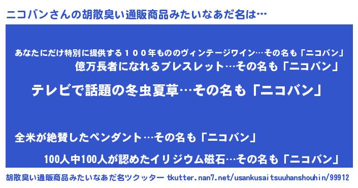 | 意味不明あだ名 | 『自称ニコバン』『ペロリンニコバン』 |