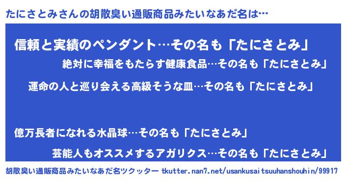 | 意味不明あだ名 | 『たにさとみフォーエバー』 |