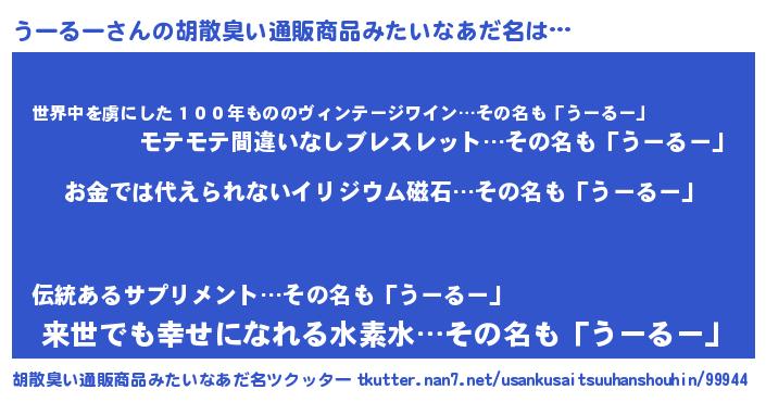 | ヒーロー風カッコイイあだ名 | 『友情の使者うーるー』『仮面ウーダー』 |