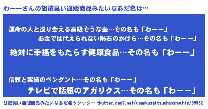 わーーさんの胡散臭い通販商品みたいなあだ名をツクッター!