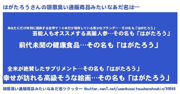| 意味不明あだ名 | 『永久保存はがたろう』『自称はがたろう』 |