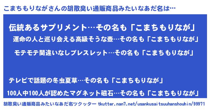 | 肩書あだ名 | 『こまちもりなが社長』 |
