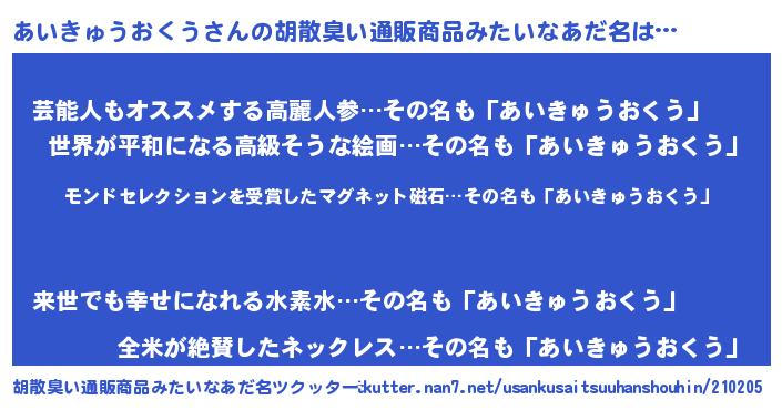 | 意味不明あだ名 | 『眠気覚ましガムあいきゅうおくう味』 |