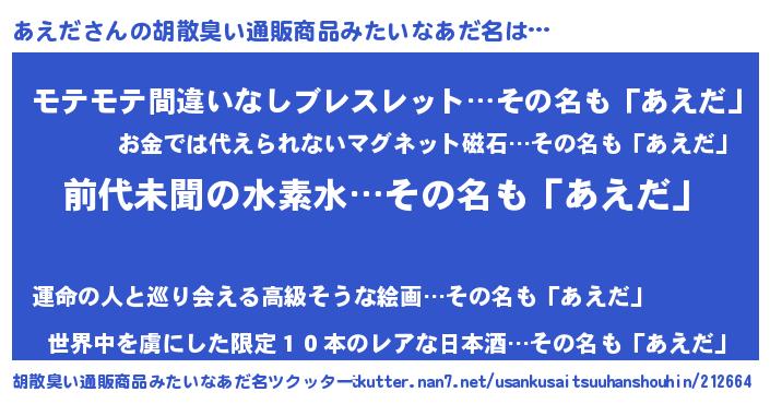 | ヘコむあだ名 | 『あえだ(震え声)』『あえにー』 |