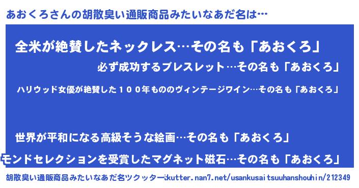 | 男性向けラノベタイトル風あだ名 | 『アオクロスレイヤー』『緋弾のアオクロ』 |