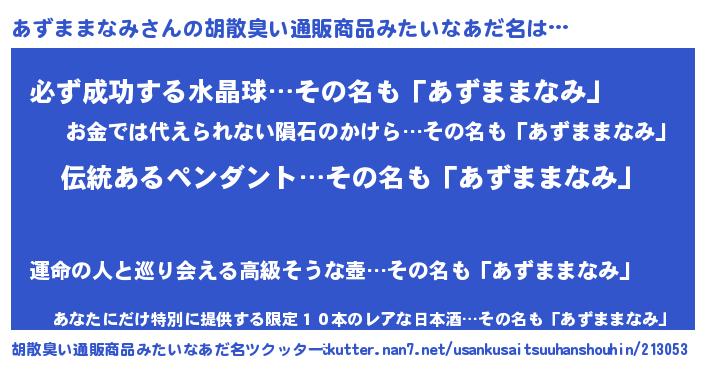 | 意味不明あだ名 | 『とにかく怪しいあずままなみ』 |