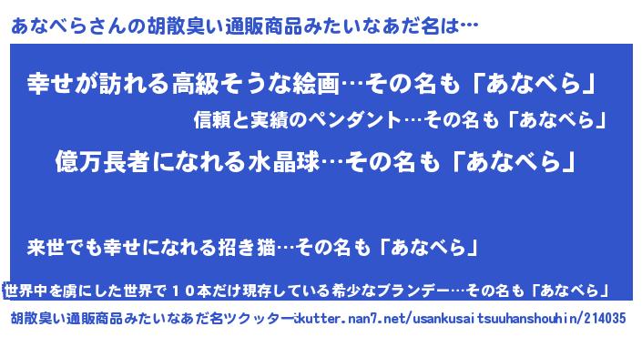 | 恥ずかしいあだ名 | 『プリティーあなべら』『あなっちょ』 |
