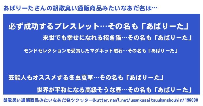 | 自動車の名前っぽいあだ名 | 『アンR』『アバティマ』『アクア』 |