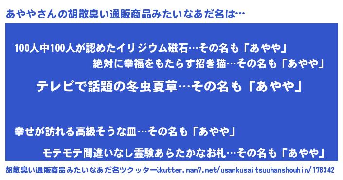 | ヘコむあだ名 | 『あやもー』『あやや(笑)』 |