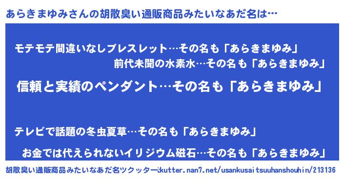 | 肩書あだ名 | 『あらきまゆみリーダー』 |