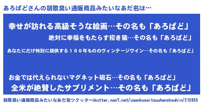 | 意味不明あだ名 | 『ヨモギ科あろぱど属』 |