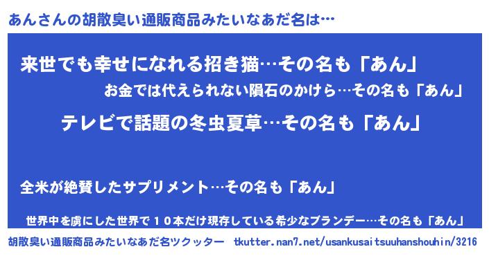 | 意味不明あだ名 | 『自称あん』『永久保存あん』 |