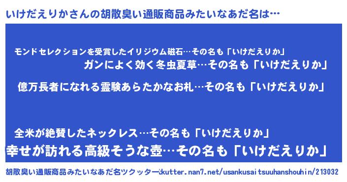 | 恥ずかしいあだ名 | 『プリティーいけだえりか』『いけっちょ』 |