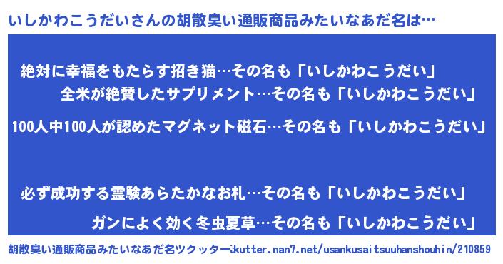 | ヘコむあだ名 | 『いしかわこうだい(笑)』『いし太郎』 |