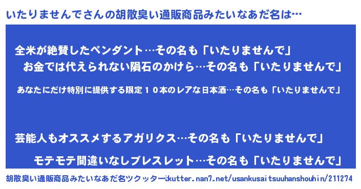 | 意味不明あだ名 | 『住所不定無職いたりませんで(65歳)』 |