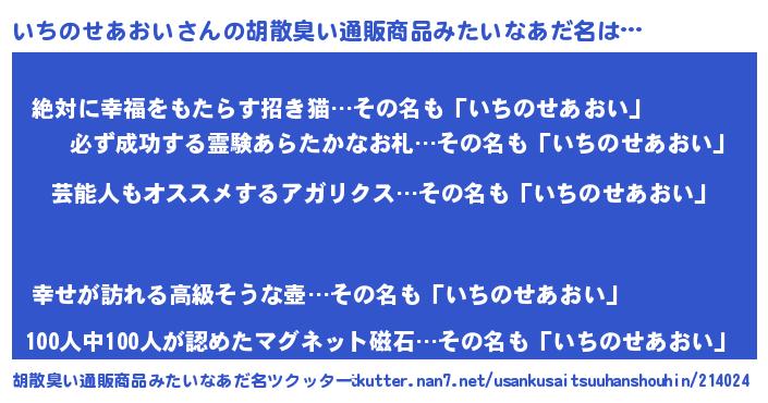 | 可愛いあだ名 | 『いちうちぇる』『いちのせあおいママ』 |