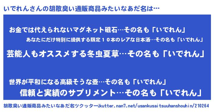 | 男性向けラノベタイトル風あだ名 | 『Re:いでれんから始める異世界生活』 |