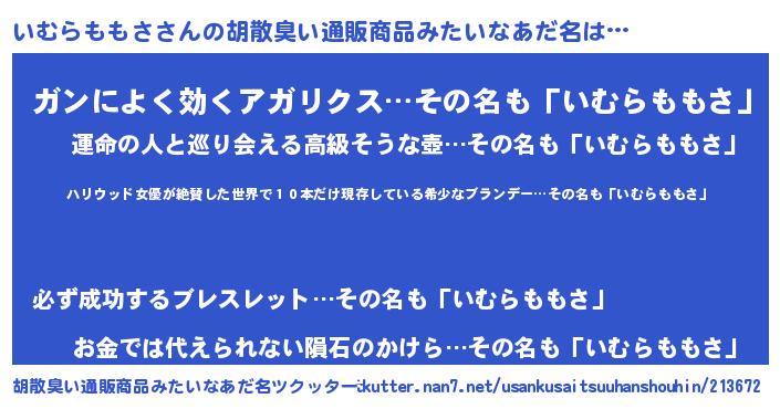 | 意味不明あだ名 | 『住所不定無職いむらももさ(74歳)』 |