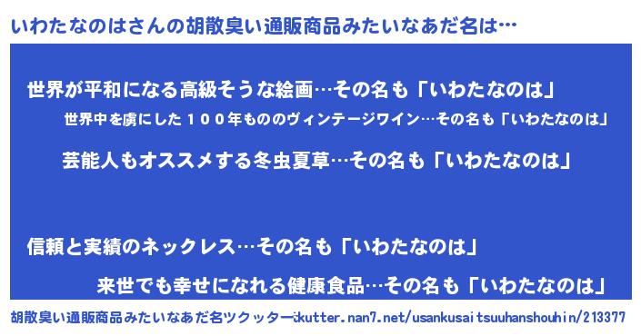 | 意味不明あだ名 | 『自称いわたなのは』 |