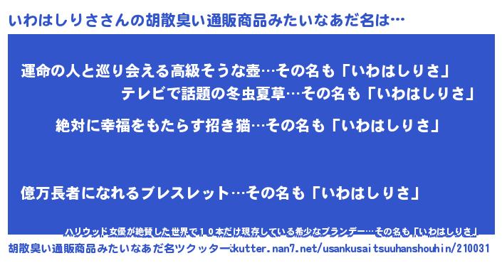 | 意味不明あだ名 | 『永久保存いわはしりさ』 |