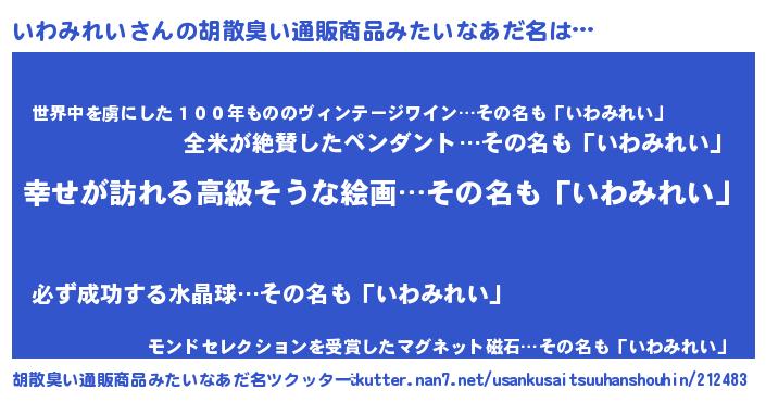 | 男性向けラノベタイトル風あだ名 | 『やはりいわみれいの青春ラブコメはまちがっている 』 |