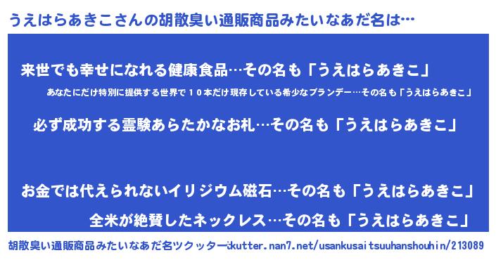 | ヘコむあだ名 | 『うえっふぃ~』『うえはらあきこ(笑)』 |