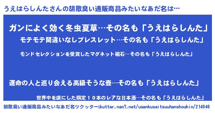 うえはらしんたさんの胡散臭い通販商品みたいなあだ名をツクッター!