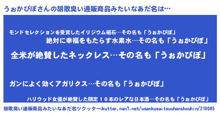 | ヘコむあだ名 | 『うぉっ子』『うぉかぴぽ(笑)』 |
