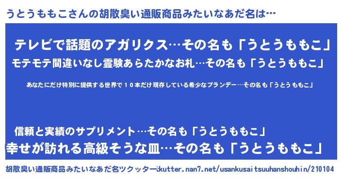 | 意味不明あだ名 | 『住所不定無職うとうももこ(85歳)』 |