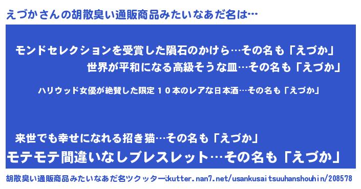 | 意味不明あだ名 | 『しいたけ科えづか属』『ペロリンえづか』 |