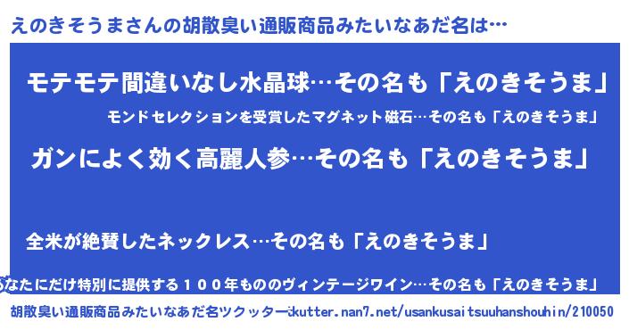 | 欧米人風あだ名 | 『トリンドルえのきそうま』 |