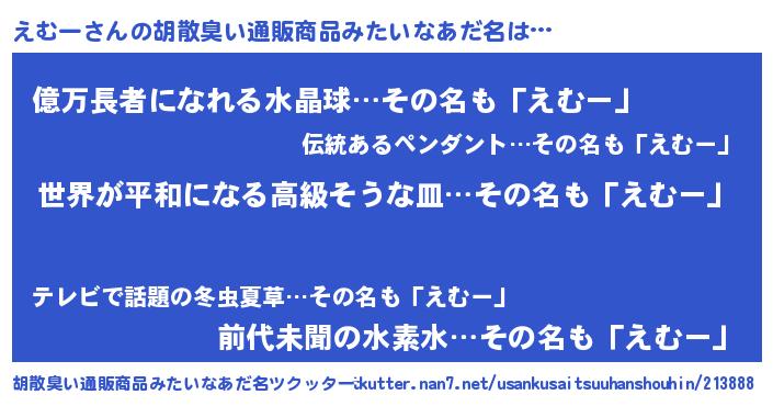 | 意味不明あだ名 | 『えむーフォーエバー』『ペロリンえむー』 |