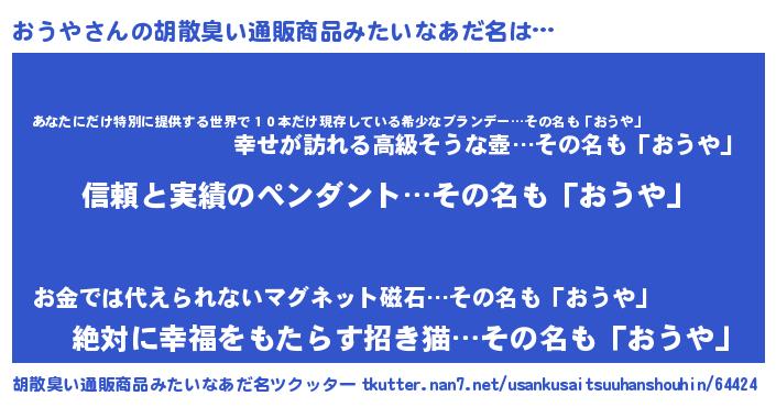 おうやさんの胡散臭い通販商品みたいなあだ名をツクッター!
