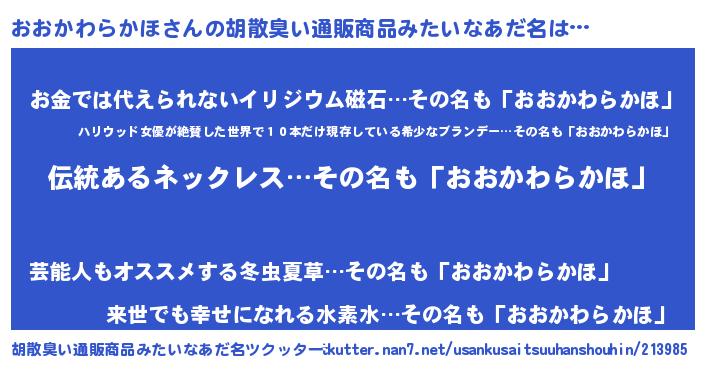 | 意味不明あだ名 | 『とにかく怪しいおおかわらかほ』 |